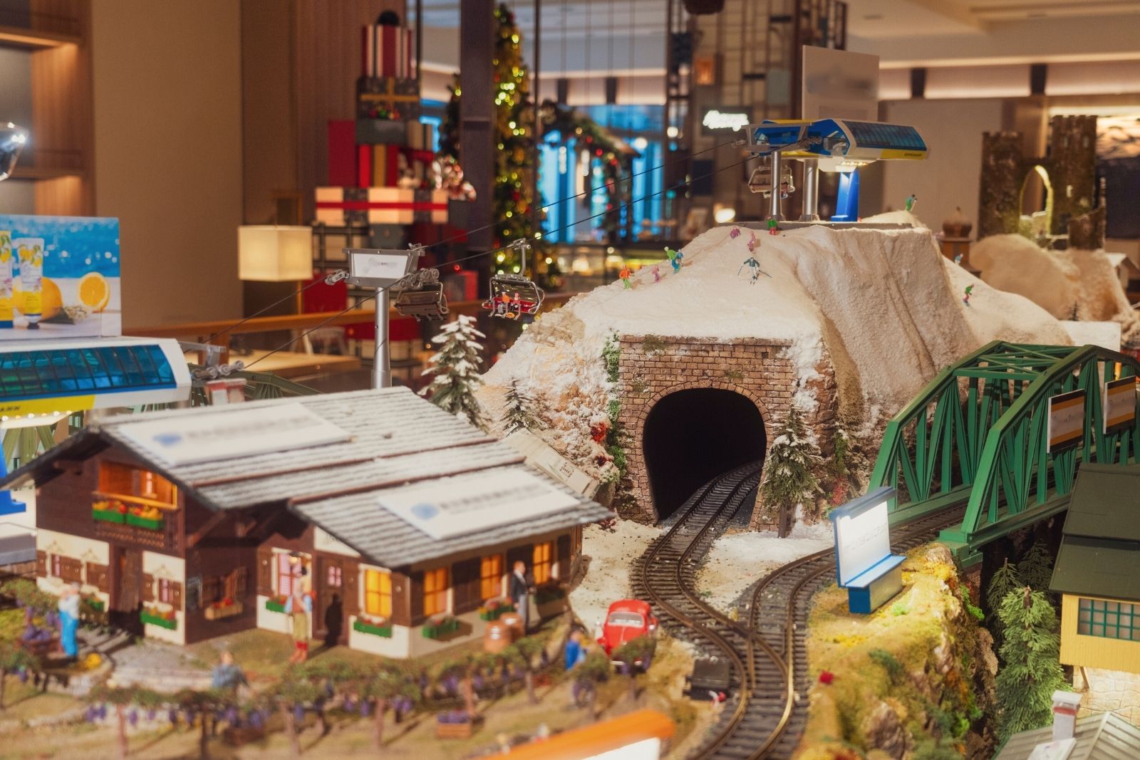 クリスマス・トレインとは職人が一つひとつ手作業で仕上げた美しいヨーロッパの街並みと、そこに暮らす人々の様子を表現した大規模なジオラマと鉄道模型の展示物で、繊細なミニチュアの世界に、色とりどりの貨車を連ねた列車が走り抜ける光景を楽しむことができます。